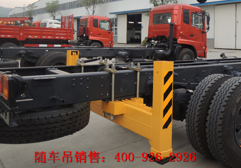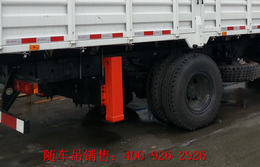 對(duì)于后支腿(后置吊機(jī)則為前支腿),在一些較小噸位的隨車吊上是以選配件的形式出現(xiàn)在配置單上的,有了后支腿,隨車吊在起重作業(yè)的時(shí)候可以像汽車吊一樣將車體完全架空,獲得更好的穩(wěn)定性。后支腿一般有兩種樣式,一種是固定式,這種支腿只能豎直方向舉升與收攏,多見于一些小噸位底盤的隨車吊。